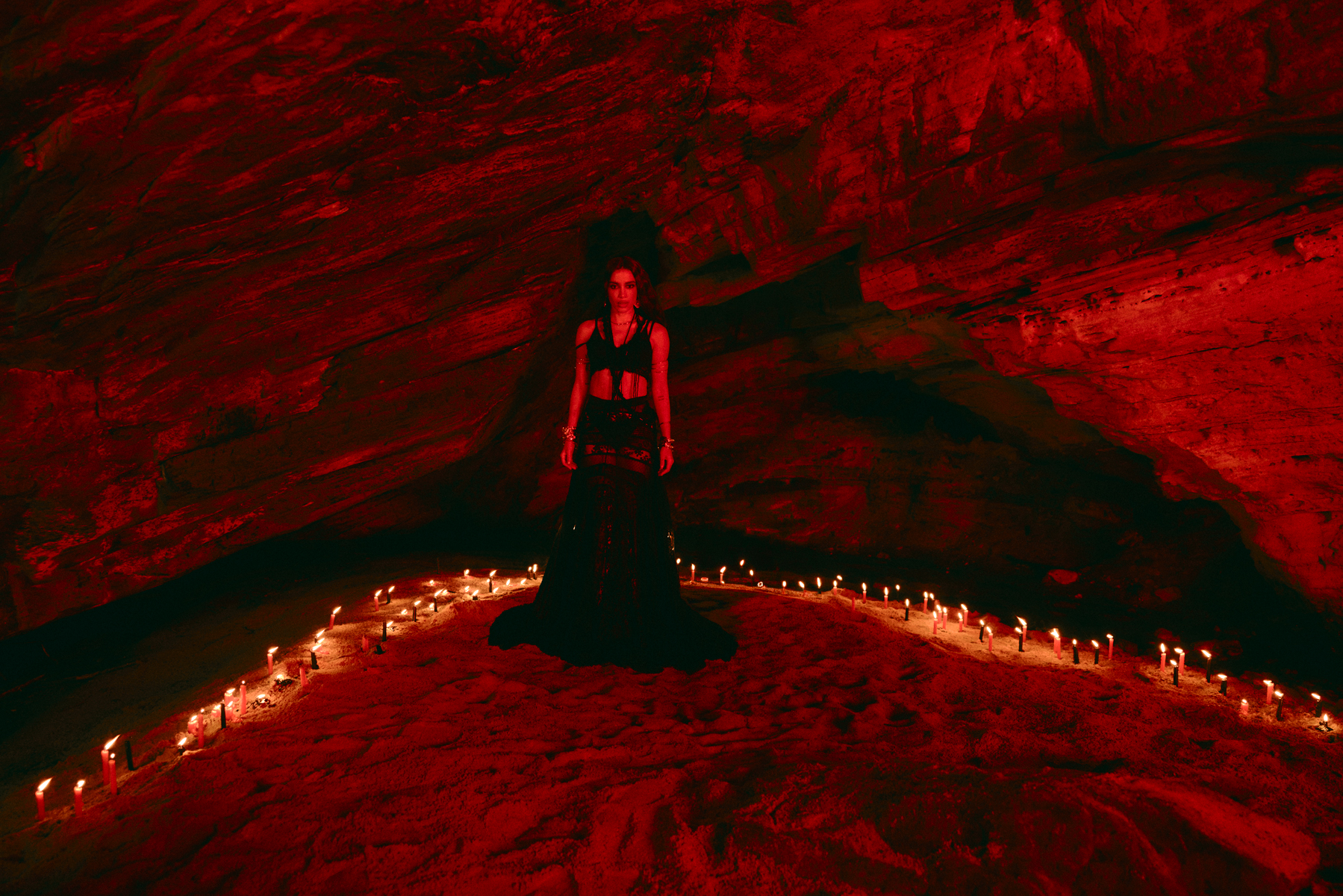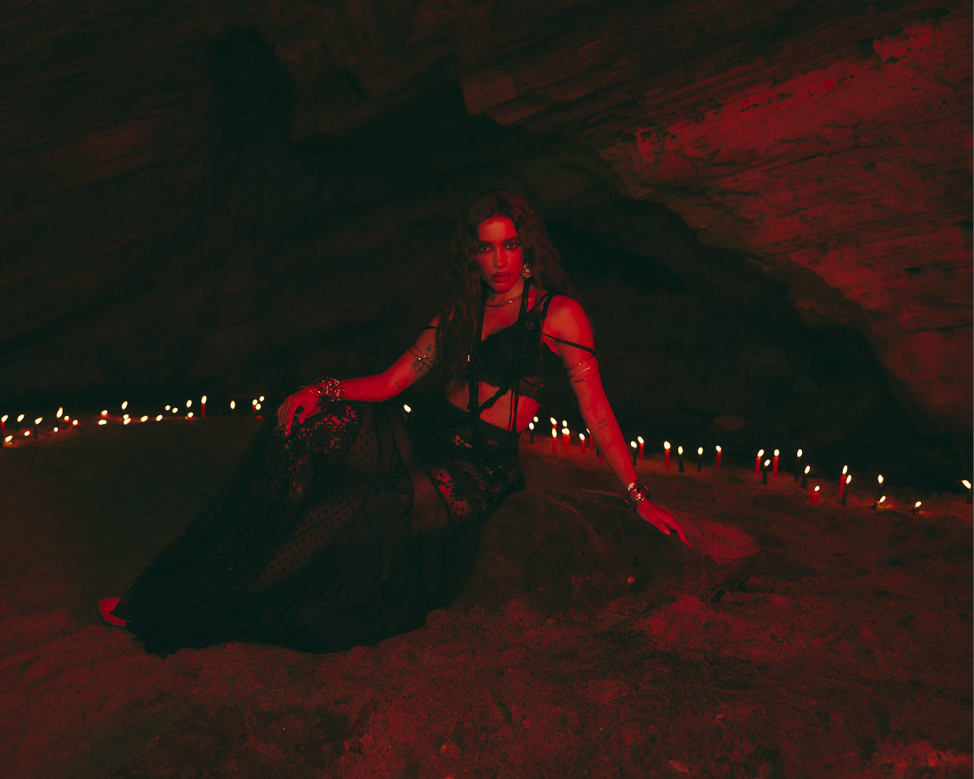 A faixa “Meia-Noite” é um ponto de intersecção. De um lado, a batida eletrônica e o grave dos paredões; do outro, a reverência a Exu e Pombagira. Para Anitta, a rua e a noite são territórios de poder. No vídeo, essa força é materializada por um círculo de atabaques que envolvem sistemas de som que parecem brotar da terra. A presença de alguidares em chamas não é meramente estética; é uma representação de proteção e ritualística que transforma o entretenimento em uma experiência de imersão cultural.