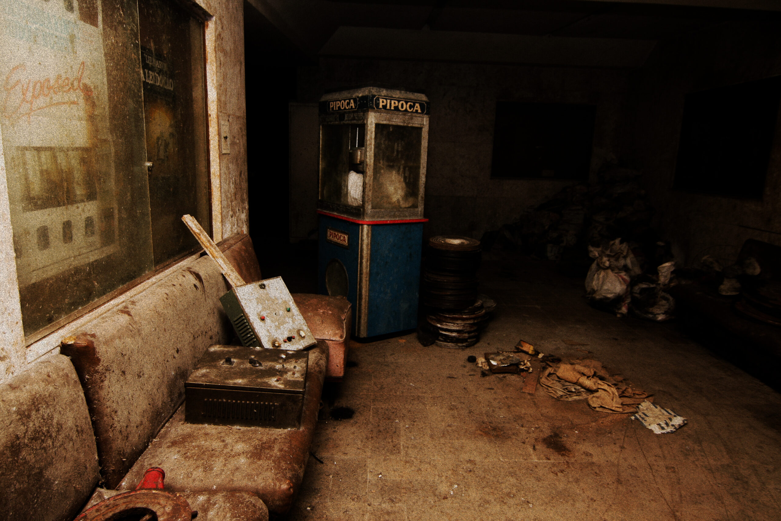 A proposta não é apenas olhar, mas sentir. “Cinema Fantasma” é composta por três obras que se complementam. O público vai encontrar uma projeção de vídeo arte com fotos de cinemas fechados e uma locução que guia a reflexão. Além disso, um letreiro luminoso dá nome à mostra e uma série de impressões usa técnicas clássicas, como o relevo seco em madrepérola e tinta fosforescente, aplicadas diretamente na parede.