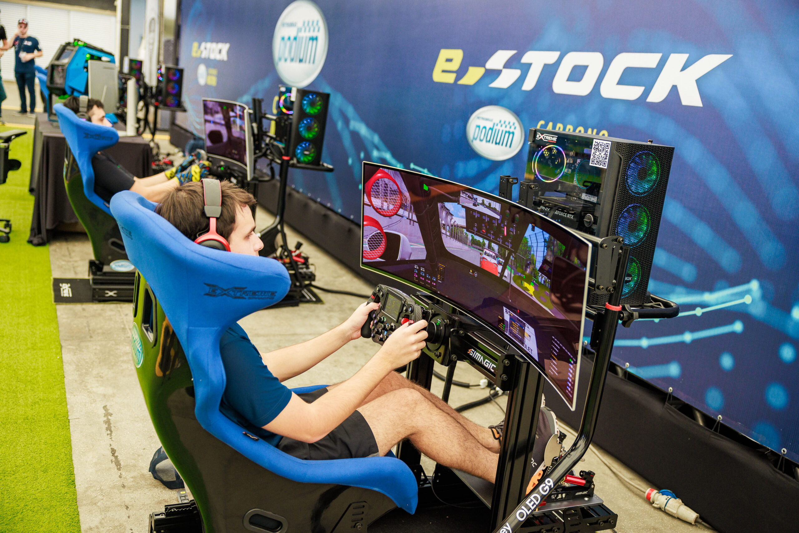 O campeão da Copa E-Stock Podium Carbono Neutro levou para casa um prêmio especial: um PC nível Podium, gabinete personalizado com hardware de última geração, criado com exclusividade pela equipe do LabZ, canal especializado em tecnologia. A ação de construção da máquina teve a participação de influenciadores, dos pilotos da equipe Lubrax | Podium Stock Car Team e até da comunidade gamer por meio de lives, e foi retratada em uma websérie transmitida no Youtube e na Twitch. A configuração do computador que garante máxima performance, permitindo alto FPS e qualidade, foi revelada neste domingo: processador Ryzen 9 7950X3D; placa de vídeo RTX 4090 Master; placa-mãe X670E Master; memória DDR5 64GB 6400Mhz; armazenamento SSD 2TB Gen5; alimentação fonte 1500W Platinum; e um sistema de refrigeração personalizado Quantum Velocity. Além do LabZ participaram da ação os criadores de conteúdo e gamers @Jukeslol e @Vitorinha.